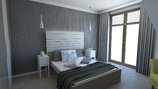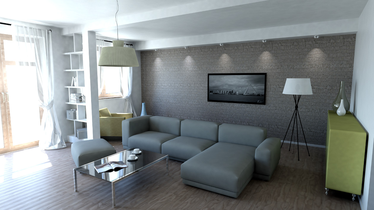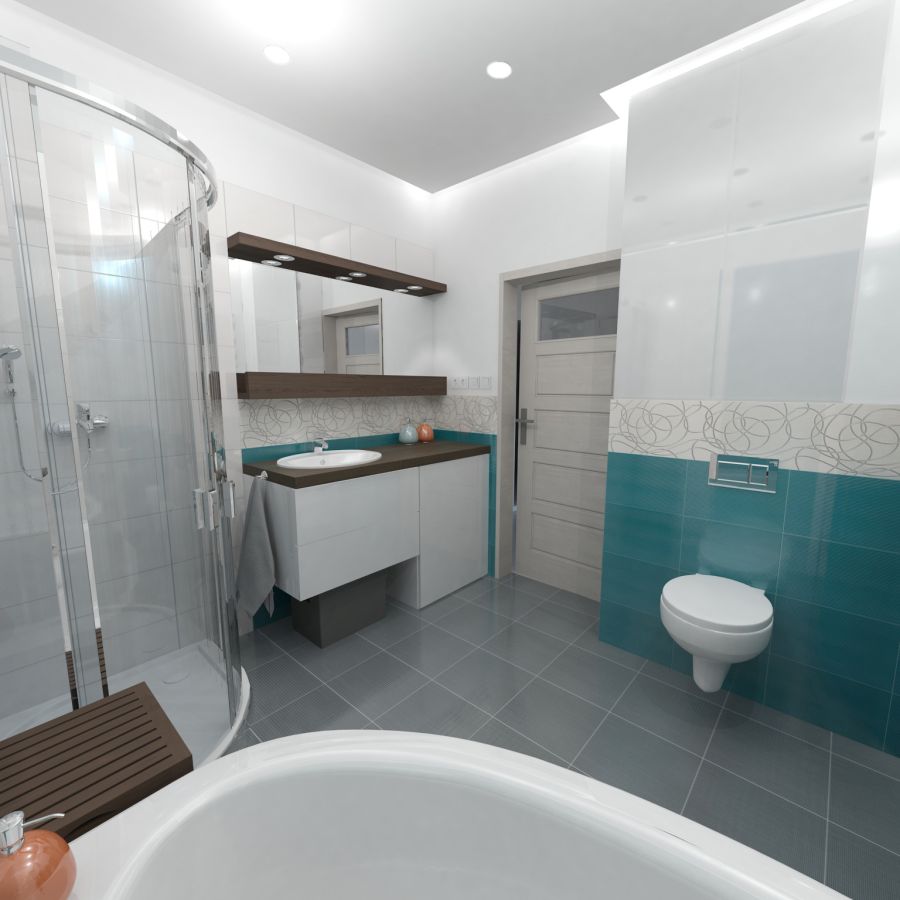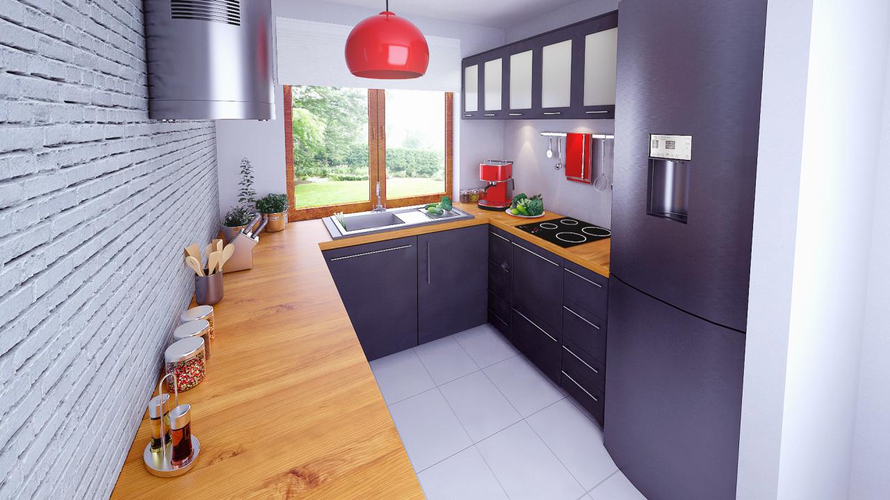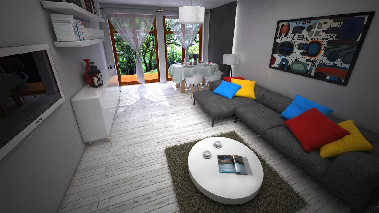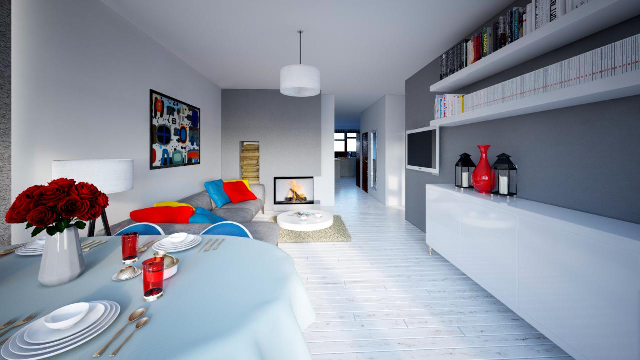 Zaprojektowane przez nas duże okna pozwolą cieszyć się widokiem przydomowej zieleni we własnym ogrodzie. W celu podniesienia funkcjonalności mieszkania zwiększyliśmy jego wysokość i przewidzieliśmy pomieszczenia pomocnicze: garderobę, spiżarnię oraz schowek.
