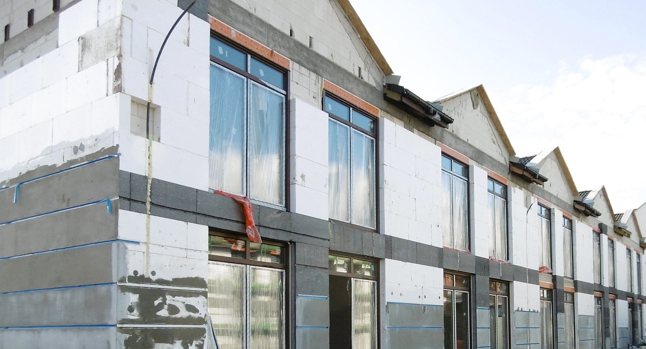 Trwają prace instalacyjne i tynkarskie wewnątrz budynków.