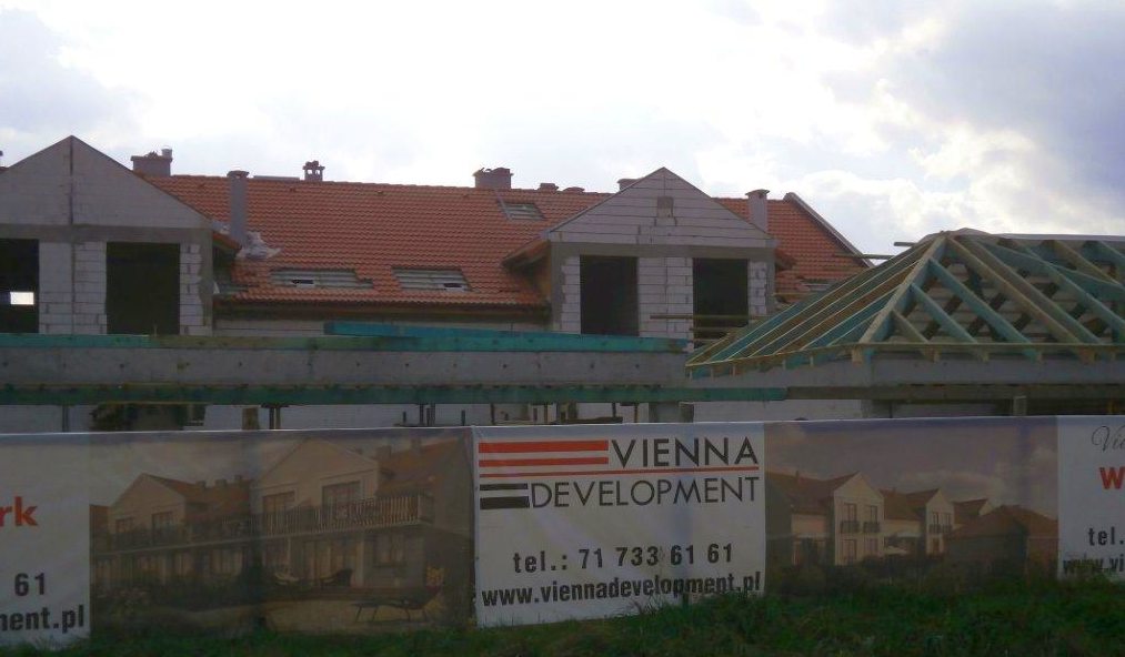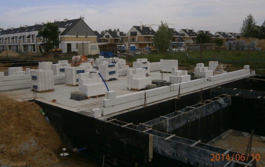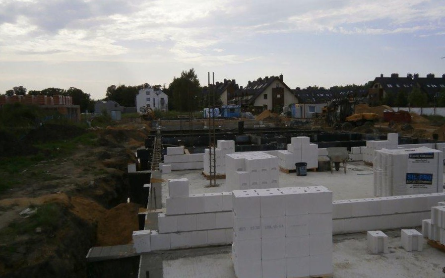 Ukończone ściany parteru i część stropów. Rozpoczęta budowa ścian drugiej kondygnacji.