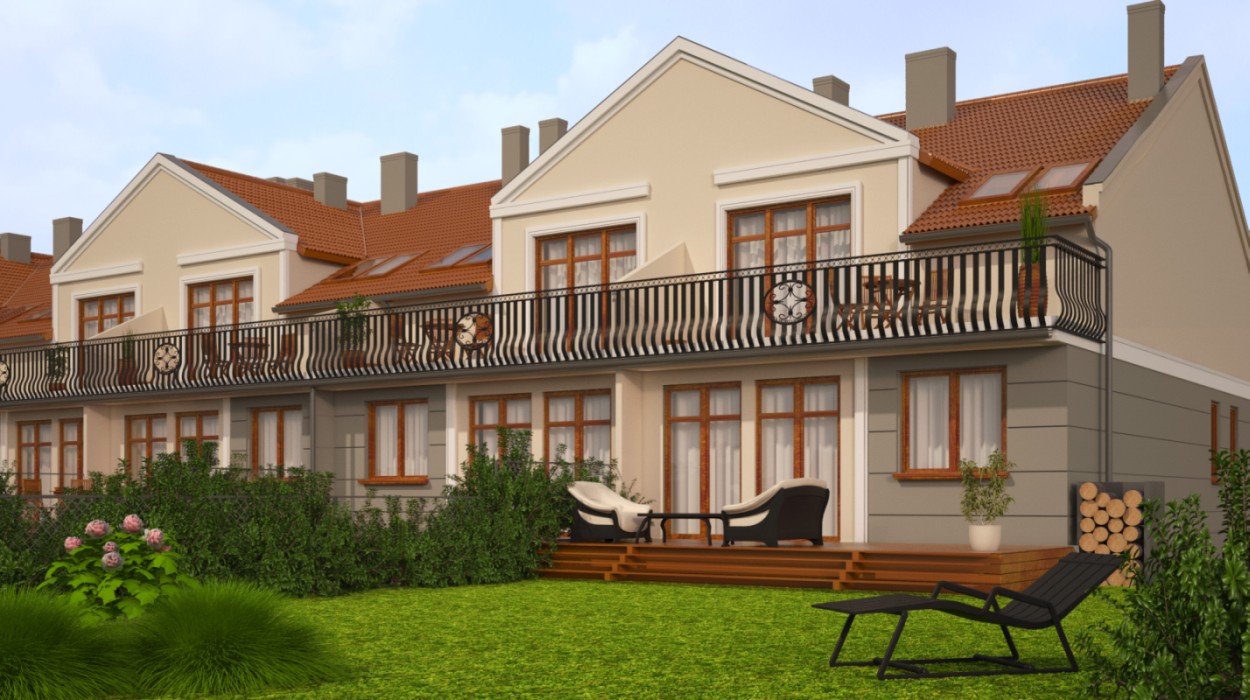 - Mieszkania w domach w zabudowie szeregowej z garażami